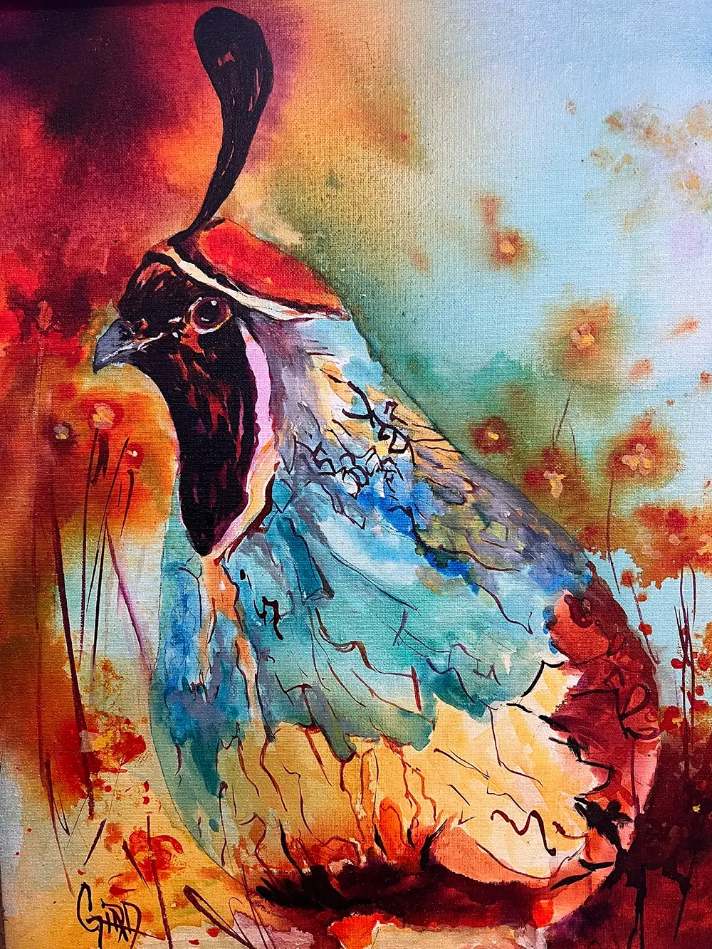 Being a native of Arizona, Gina has a passion for painting all subjects of the Wild West including colorful horses, rodeo scenes, desert landscapes, and desert animals. Gina’s paintings invite you in with their festival of swirling colors and slightly whimsical style.