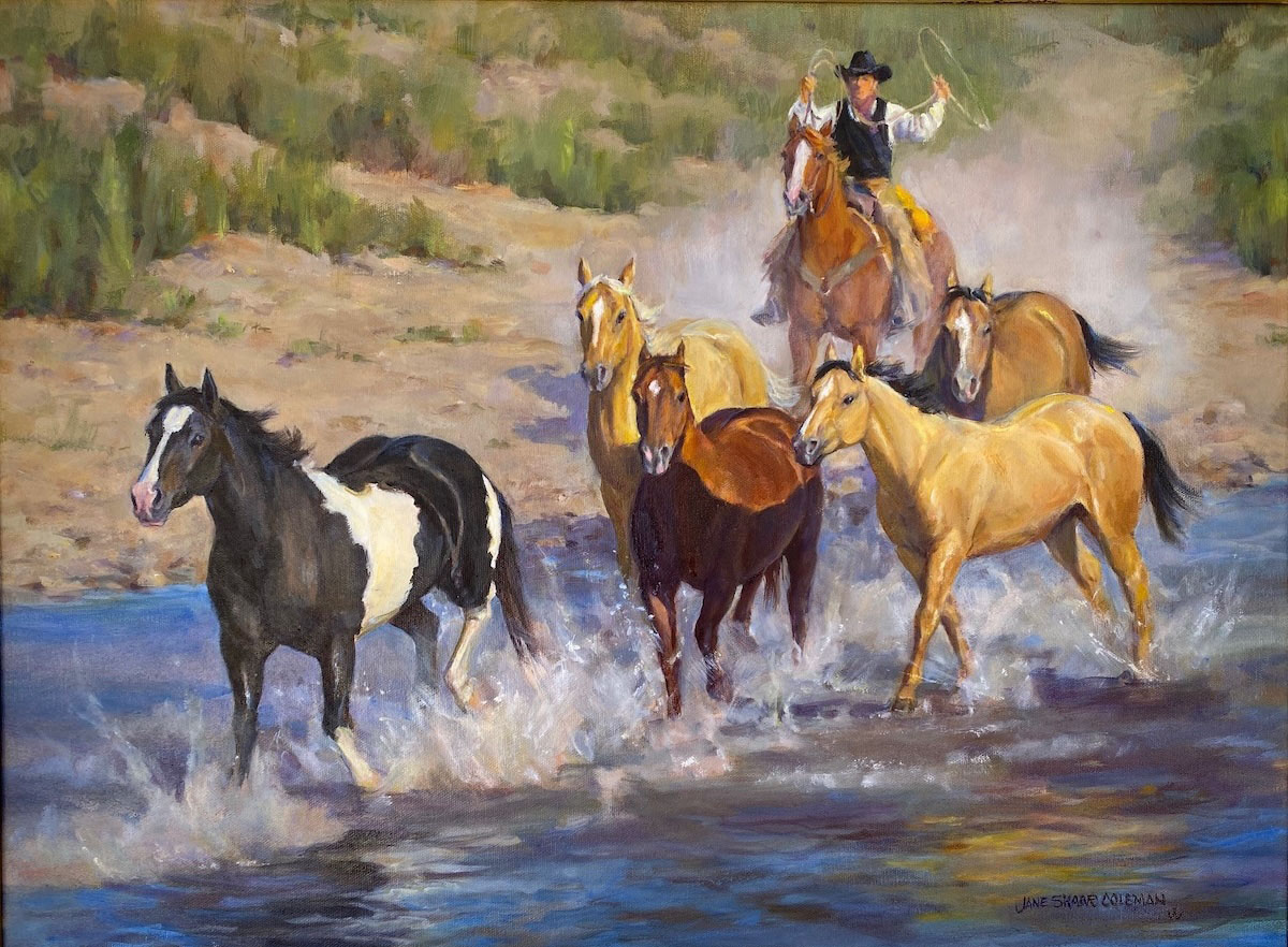 Major exhibitions have included the Desert Caballeros Western Museum’s Cowgirl Up! exhibition, the American Academy of Equine Art , Women Artists of the West, The Mountain Oyster Club, Cheyenne Western Spirit Art Show, and formerly the C.M. Russell Auction and Quick Draw in Great Falls, MT and the top 100 “Art for the Parks” competition formerly held in Jackson Hole, Wyoming.