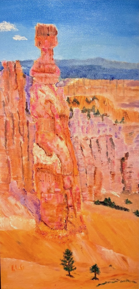 As an avid hiker, many of her paintings illustrate the places she has hiked including Ireland, Peru, the Grand Canyon and Utah’s Bif 5.